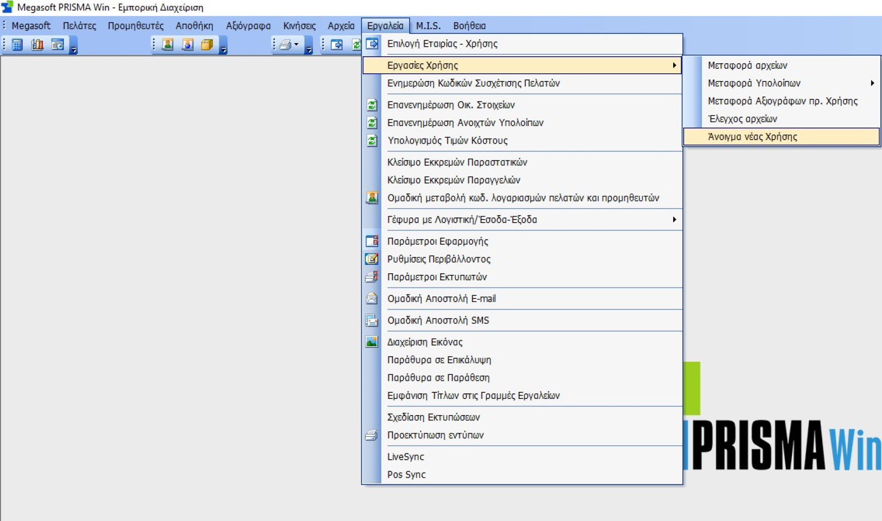 Μεταφερθείτε στο μενού Εργαλεία -> Εργασίες Χρήσης -> Άνοιγμα νέας Χρήσης